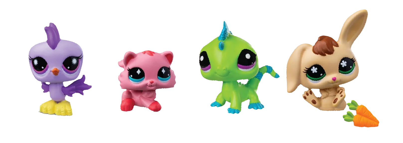 Purple Quail, Pink Kitten, Green Iguana, Tan Bunny