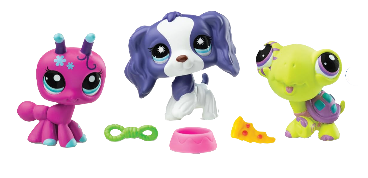 Purple/Pink Ant, Purple & White Spaniel, Green & Purple Turtle